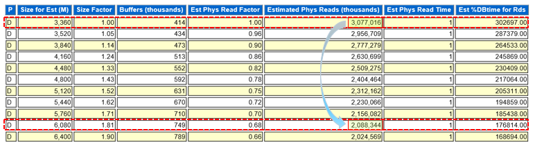 - 버퍼캐시 사이즈가 커지면서 디스크로부터 읽는 Physical Read 비율이 40~50% 감소될 것으로 예측 → 전반적인 DB 성능 향상